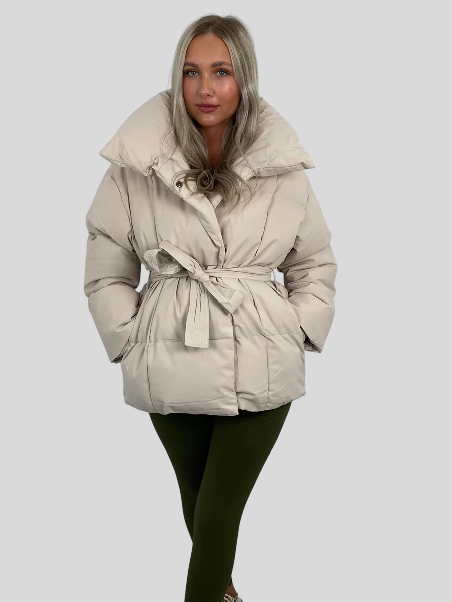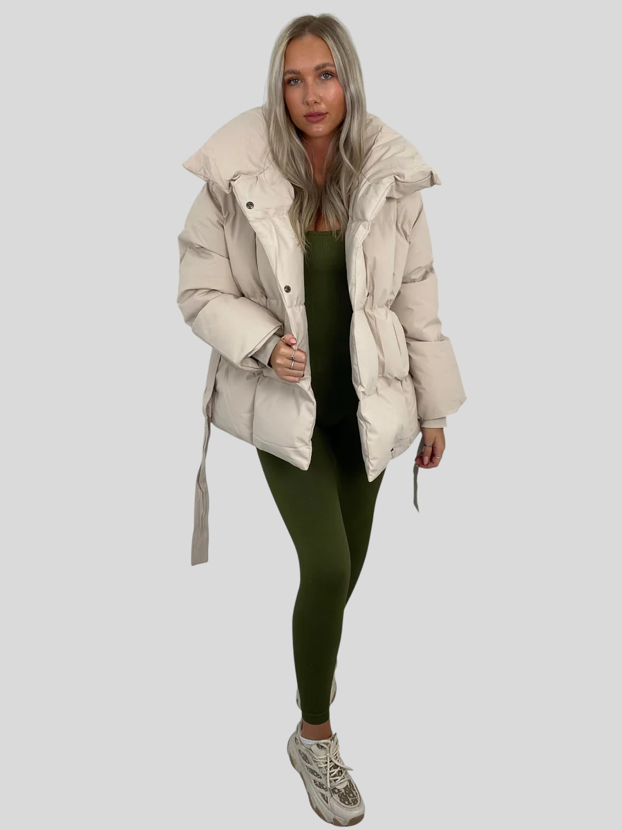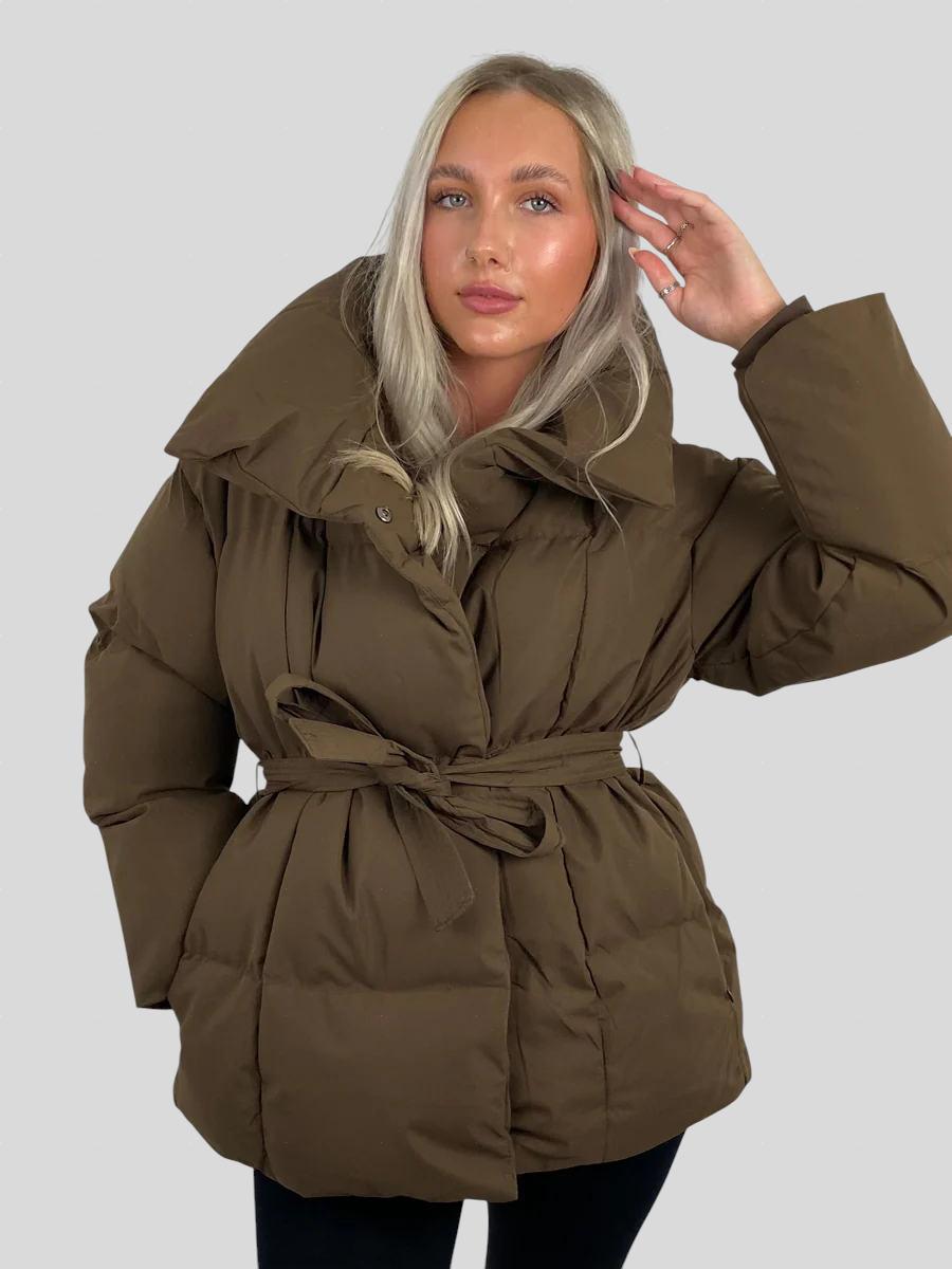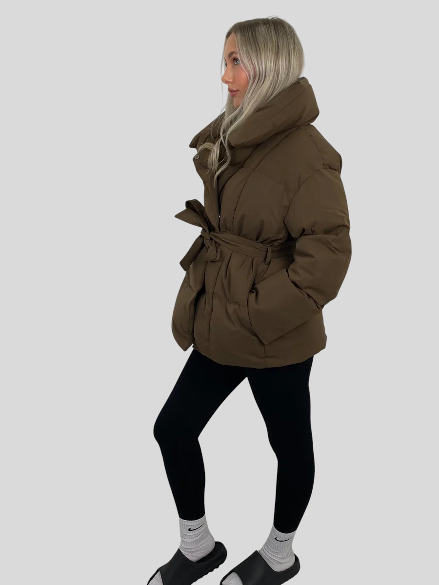 Heben Sie Ihren Stil mit einer Jacke hervor, die Raffinesse und Funktionalität verbindet. Das Puffdesign sorgt für maximale Wärme, während der Gürtel die Silhouette mit einem modernen und femininen Touch betont. Sie ist perfekt für diejenigen, die Eleganz im Alltag suchen, ohne auf Komfort verzichten zu müssen.