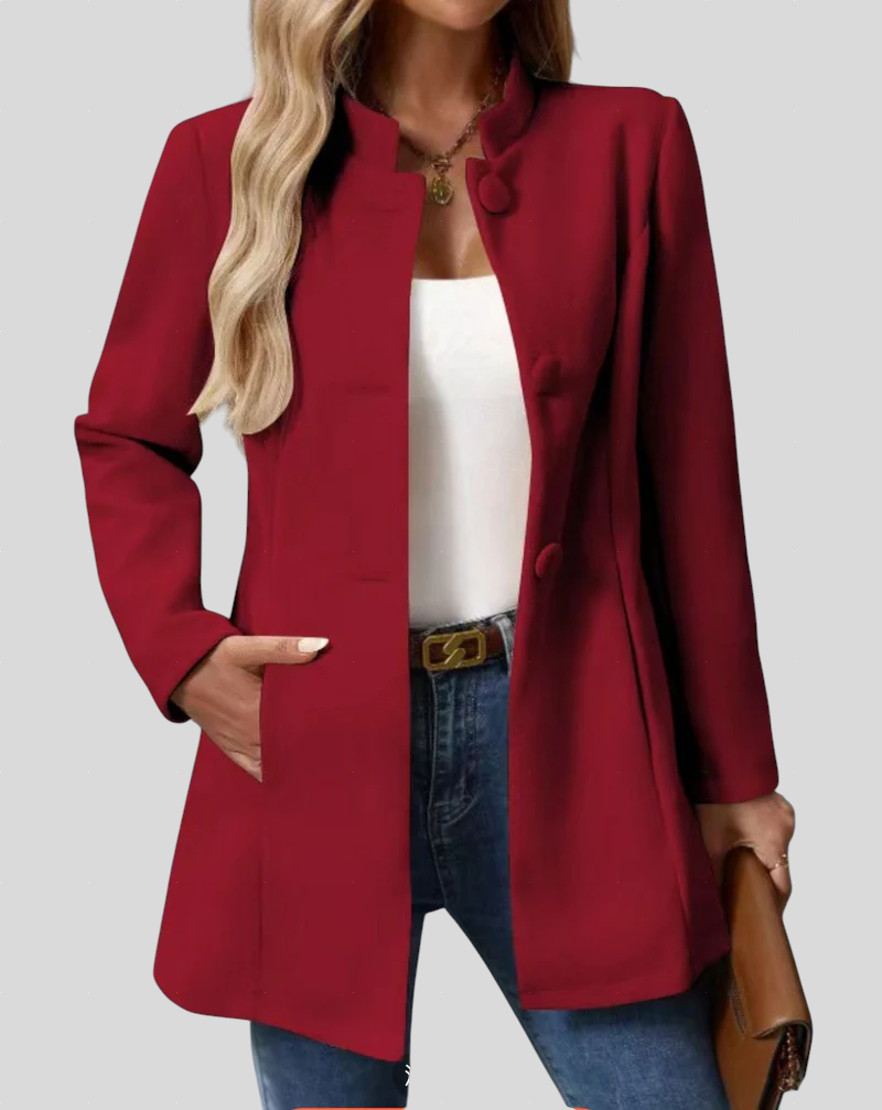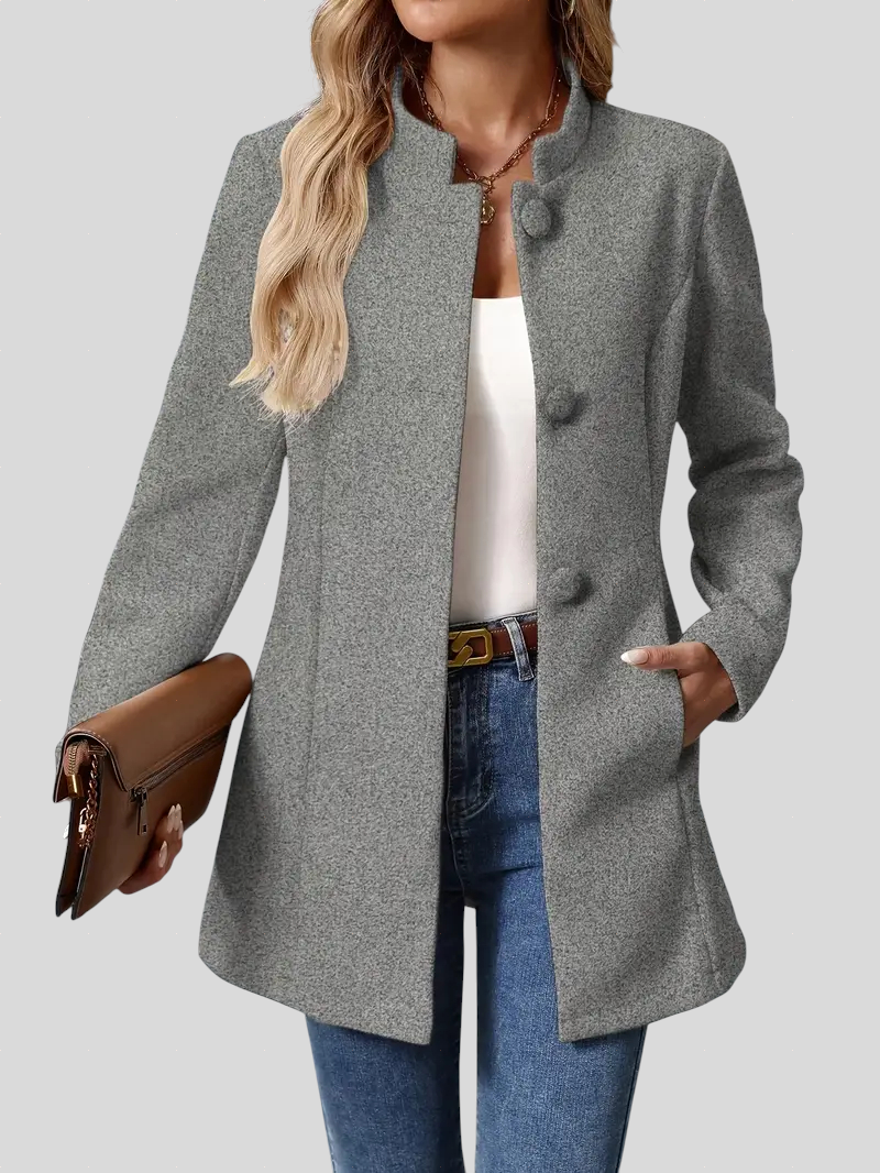 Diese Jacke wurde für Frauen entworfen, die in einem Kleidungsstück Raffinesse und Vielseitigkeit suchen. Mit ihrem eleganten Schnitt, den feinen Knöpfen und der makellosen Verarbeitung hebt sie jedes Outfit sofort hervor — sei es für den Alltag oder besondere Anlässe. Ein unverzichtbares Kleidungsstück, das zeitlosen Stil mit moderner Praktikabilität verbindet.