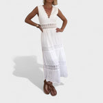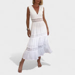 Ein Kleid, das Zartheit und Raffinesse vereint, perfekt für besondere Anlässe oder für einen lässigen, aber dennoch schicken Look im Alltag. Mit einem fließenden Schnitt, V-Ausschnitt und Spitzen-Details, die die Weiblichkeit betonen, bietet es Komfort und Charme bei jeder Bewegung. Ein vielseitiges Stück, das sich leicht sowohl für entspannte Anlässe als auch für festlichere Ereignisse anpassen lässt.