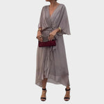 Dieses elegante Spitzenkleid ist die perfekte Verbindung von Sophistication und Weiblichkeit. Mit luftigen Ärmeln und einem schwingenden Schnitt bietet es eine Prise Glamour, ohne den Komfort zu beeinträchtigen. Der tiefe V-Ausschnitt und die Taillendetails betonen die Figur auf sanfte und raffinierte Weise, was dieses Kleid zur idealen Wahl für Abendveranstaltungen, Feiern oder besondere Anlässe macht.