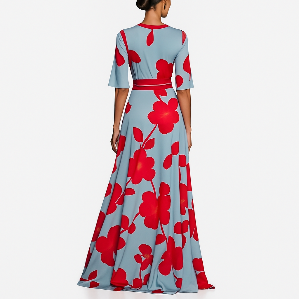 Auffälliges Design – statement Blumenmuster und schwingende Maxilänge ziehen auf den ersten Blick an.