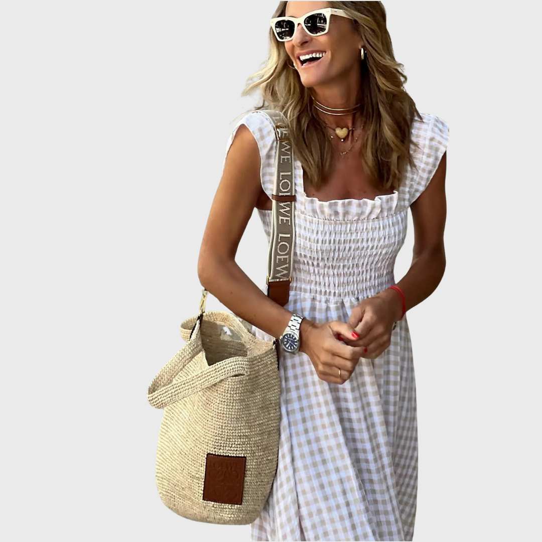 Sommerliches Maxikleid im Karomuster mit Smock-Oberteil