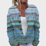 Unser Cardigan kombiniert ein verspieltes Muster mit einem lässigen Schnitt – perfekt für diejenigen, die Komfort und Farbe an sonnigen Herbsttagen in ihren Kleiderschrank bringen möchten. Dieses Modell gehört zu den Bestsellern und bietet Stil und Komfort in einem unwiderstehlichen Paket.