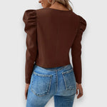 • Detaliu mâneci tip balon – Aspect feminin și modern.