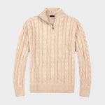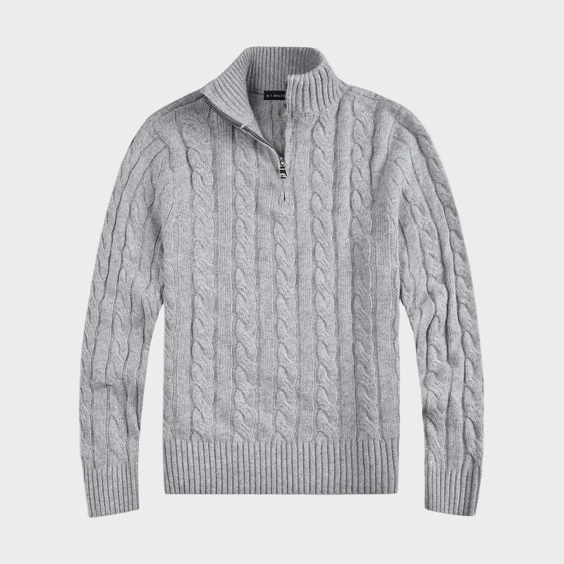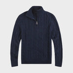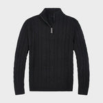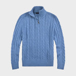 Acest pulover cu mâneci lungi este fabricat din bumbac de calitate superioară, oferind moliciune și confort. Dispune de un guler înalt elegant, un fermoar în față și margini rafinate. Croiala sa ușor ajustată permite un aspect modern și sofisticat.
