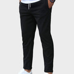 Die Allan-Hosen vereinen Komfort und Raffinesse auf perfekte Weise. Ihr weiches und flexibles Material bietet Bewegungsfreiheit, während der Slim-Fit-Schnitt einen modernen Look verleiht. Der praktische Kordelzug in der Taille macht sie einfach anzupassen und ideal für Entspannung, Reisen oder legere Outfits im Büro. Mit ihrem schlichten Design passen diese Hosen sowohl zu Sneakers als auch zu eleganten Schuhen.