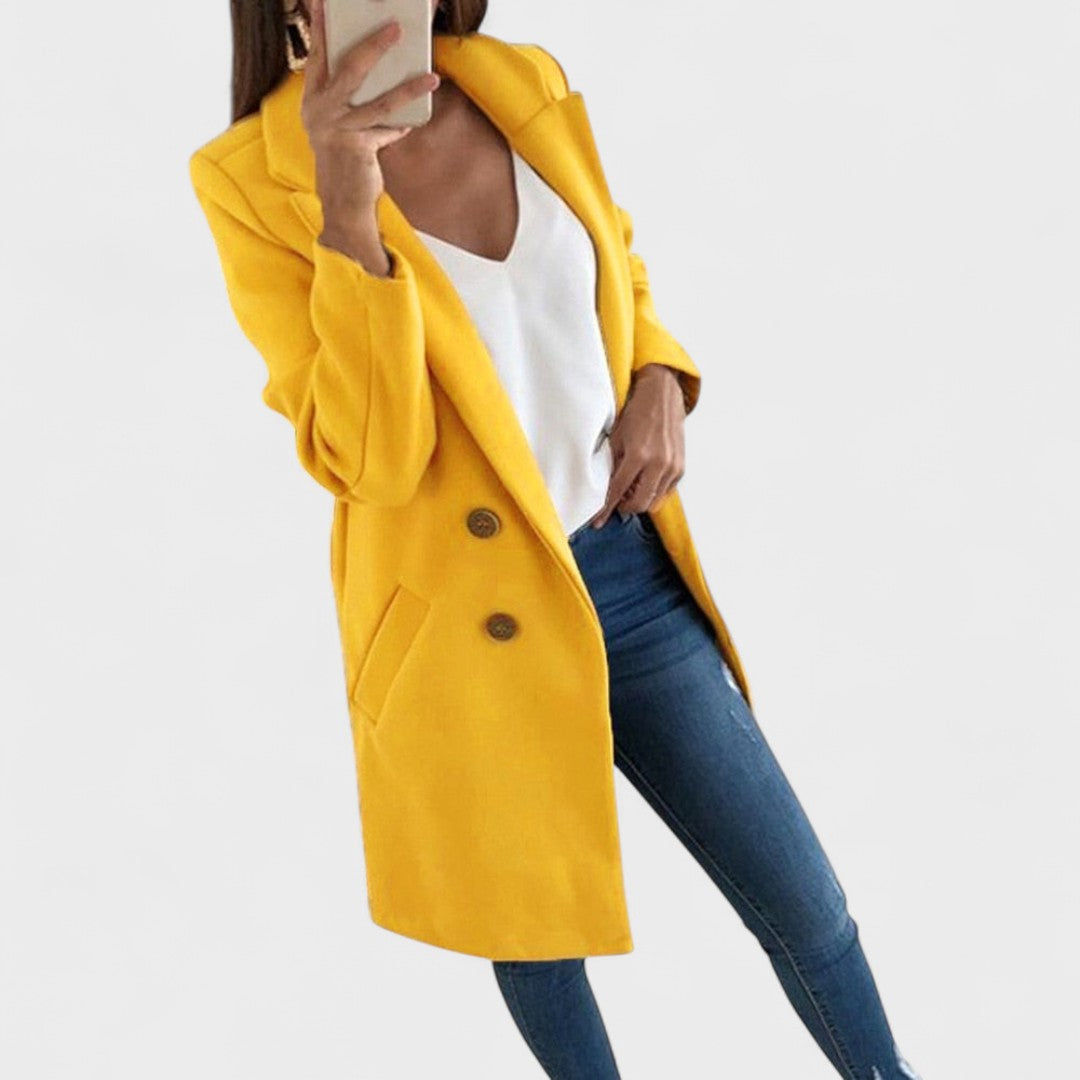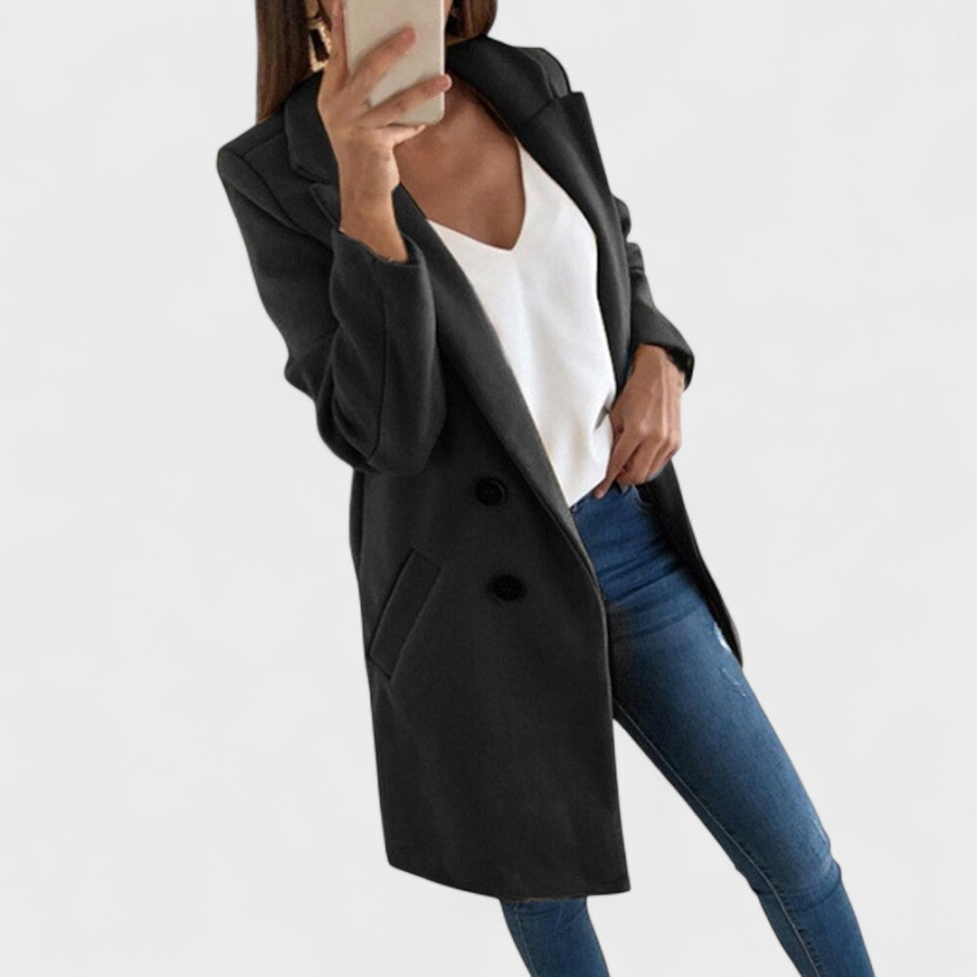 Figurschmeichelnder Schnitt – klare Linien, Revers und eine Länge, die die Figur optisch streckt.