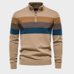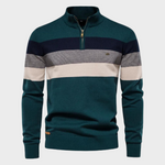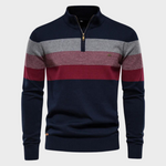 Puloverul cu fermoar la sfert Aurullo este conceput cu un model elegant în dungi și fabricat dintr-un amestec de bumbac luxos. Acest pulover ultra-moale se mulează delicat pe piele și oferă o căldură incomparabilă. Fermoarul sofisticat și croiala ajustată fac din acest pulover un element esențial versatil, perfect pentru toate ocaziile.