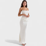 Entwickelt für Frauen, die gerne auffallen, kombiniert das Kleid Clara den Schnitt eines Korsetts mit weichem Satin, der die Silhouette umschmeichelt. Der herzförmige Ausschnitt und das drapierte Design schaffen ein elegantes und verführerisches Aussehen, perfekt für unvergessliche Nächte.
