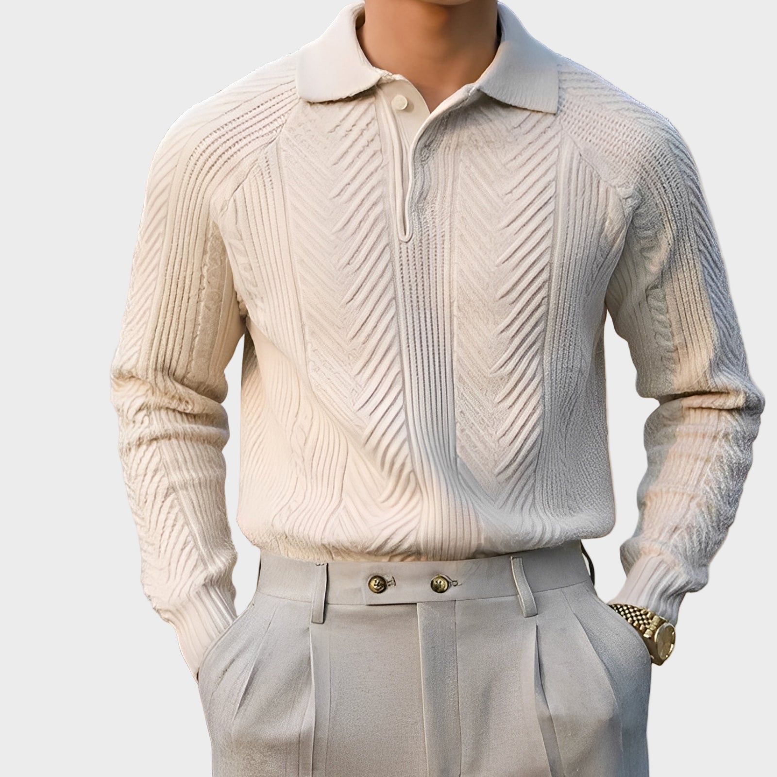 Acest pulover combină o țesătură moale cu un imprimeu distinctiv, oferind echilibrul perfect între eleganță și confort. Cu croiala sa mulată și tonurile neutre, se potrivește cu aproape orice ținută. Fie că este la birou sau în timpul liber, este versatil și întotdeauna alegerea potrivită. O piesă modernă și esențială care adaugă o notă rafinată stilului tău.