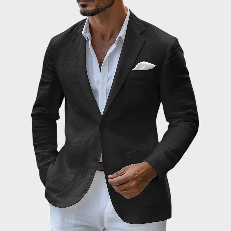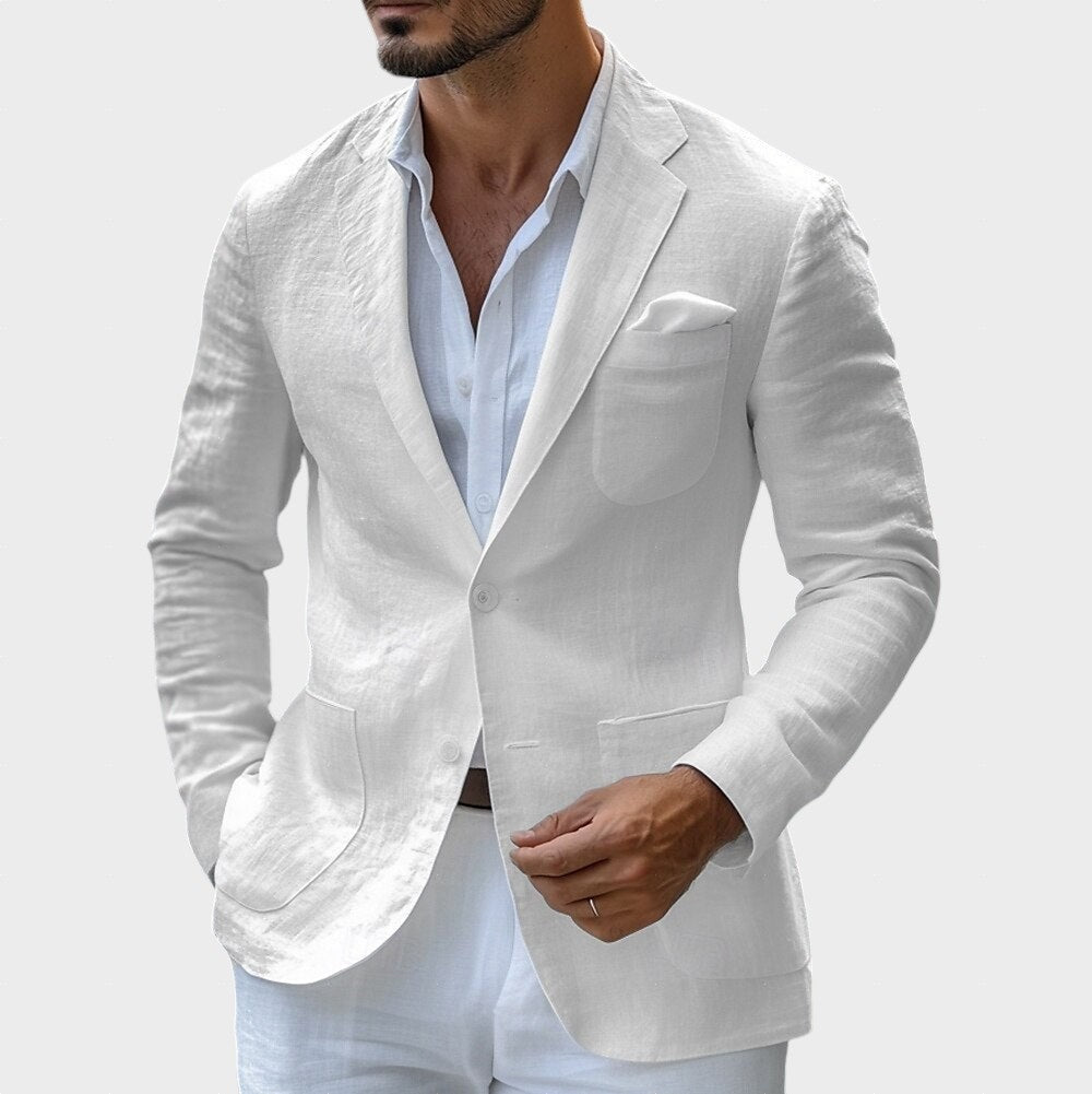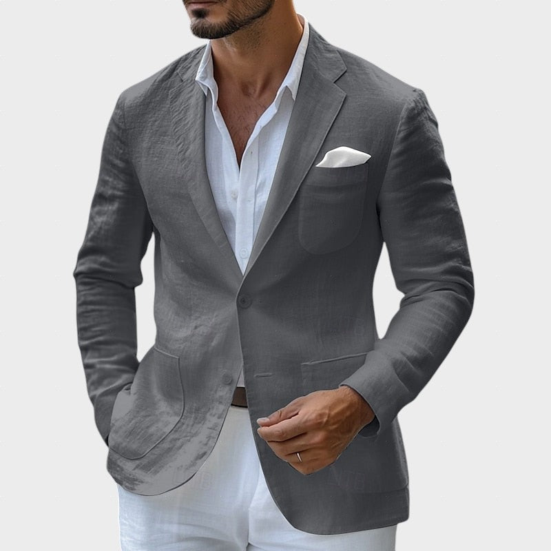 Acest sacou îmbină lejeritatea estivală cu rafinamentul elegant.