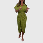 Dieses Kleid vereint klassische Eleganz mit modernem Design. Der Hemdschnitt mit Kragen und Knöpfen in Kombination mit dem effektvollen Bindegürtel schafft eine schmeichelhafte Silhouette und betont die Weiblichkeit. Das weiche Material bietet Komfort, und die Midi-Länge macht es zur perfekten Wahl für geschäftliche Anlässe, Abendveranstaltungen oder festliche Events.