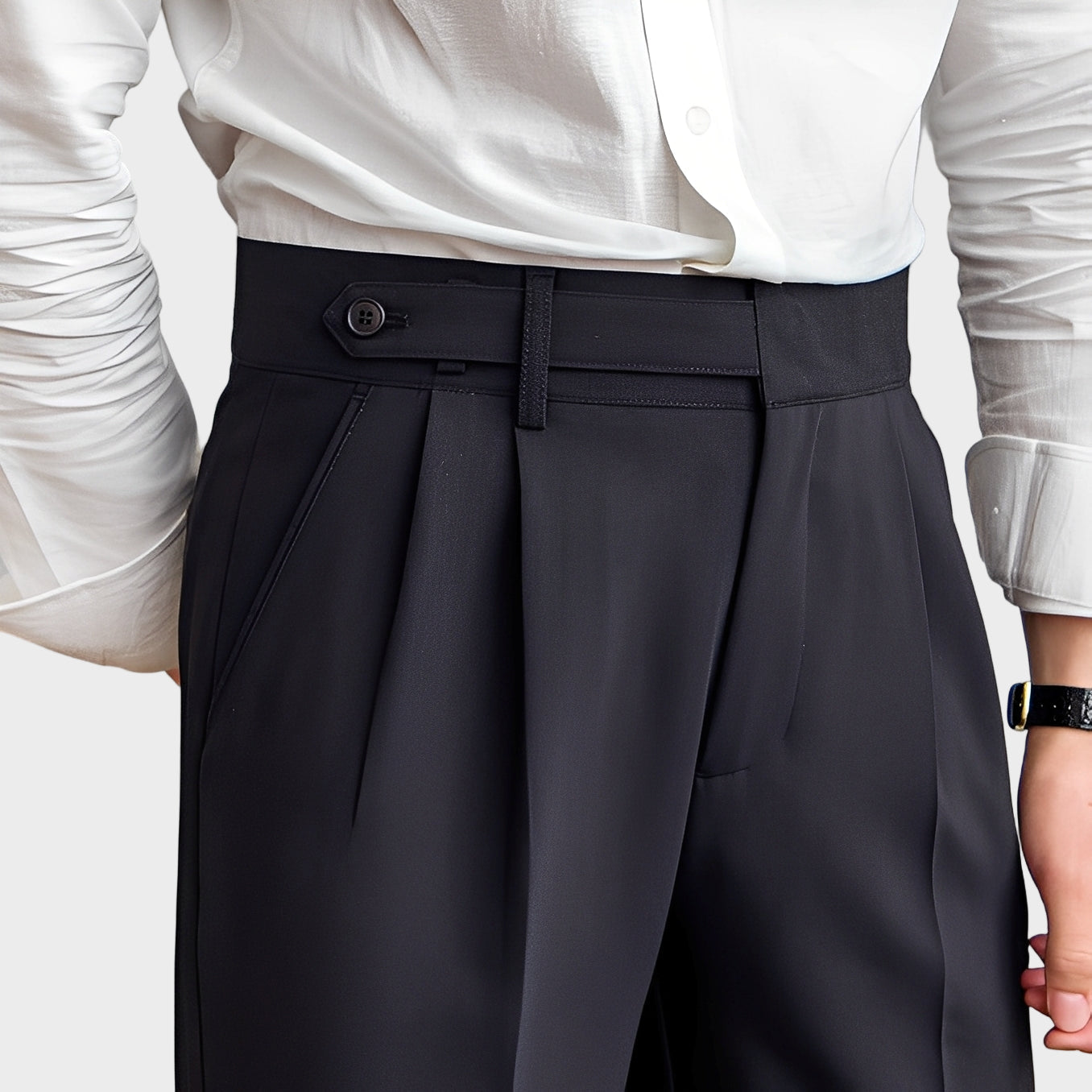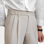 Diese Hosen bringen den von britischem Stil inspirierten Schnitt in eine zeitgenössische Silhouette. Hergestellt aus einem leichten und atmungsaktiven Material, sind sie perfekt für Frühling und Sommer. Die Vorderfalten und der verstellbare Bund bieten einen markanten Schnitt, während der lockerere obere Teil und der konische Beinverlauf Eleganz mit Komfort kombinieren. Ob sie mit einem Hemd oder einem T-Shirt getragen werden, sie vervollständigen jeden Look mit natürlicher Sophistication.