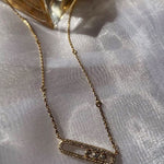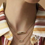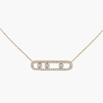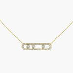 Unser exklusiver Schmuck Melissa, hergestellt aus Gelbgold, Silber oder Roségold und Diamanten, zeichnet sich durch drei bewegliche Diamanten aus, die perfekt verarbeitet sind. Das filigrane Design mit elegantem Pavé betont den Glanz der Diamanten.