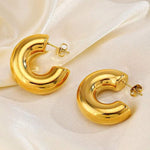 Unsere massiven Ringe sind mit 14K Gold überzogen und wasserfest. Setzen Sie ein mutiges Statement mit den Chunky Hoops Ohrringen, die mit 14K Gold überzogen sind. Diese beeindruckenden Ohrringe haben ein solides und modernes Design, das jedes Outfit aufwertet. Sie sind perfekt, um Ihrem Look mit einem modernen Akzent zu verbessern und kombinieren einen robusten Stil mit klassischer Eleganz.
